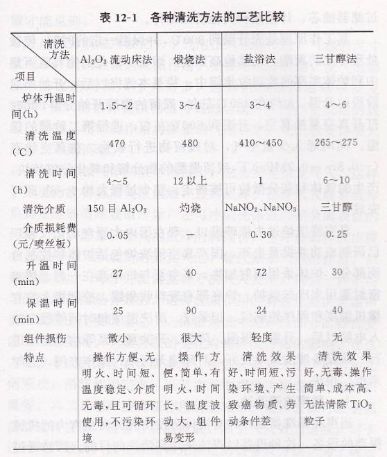 一、煅燒法和水蒸氣保護(hù)煅燒法 煅燒法是用耐火材料砌成爐膛,采用電熱棒加熱,用白金電阻或熱電偶溫度計(jì)控制和指示溫度。煅燒時(shí),將被清洗物放入爐內(nèi),在400~450℃,煅燒約6h后,除去灰塵即可。清洗噴絲板時(shí),則再用酒精清洗、壓縮空氣吹干,鏡檢合格后備用。本法簡單易行,但勞動(dòng)條件差,不易清洗干凈,組件等被清洗物易燒壞變形。因此,目前已逐步被其他清洗方法取代。為防止煅燒時(shí),超過規(guī)定溫度而起火,損壞被清洗物,采用過熱蒸氣噴淋的方法,使整個(gè)煅燒爐內(nèi)不出現(xiàn)明火,這就是水蒸汽保護(hù)煅燒法。 煅燒法具有以下特點(diǎn):(1)清潔效率較差,處理周期6~10h,甚至更長,煅燒時(shí)很難除盡碳的殘?jiān)?,這樣就會增加后道補(bǔ)充清潔的要求;(2)設(shè)備投資費(fèi)用對于碳鋼結(jié)構(gòu)的較低,其運(yùn)行費(fèi)用屬低或中等;(3)環(huán)境保護(hù)差,大量廢氣發(fā)散污染空氣,炭黑粘附室內(nèi)墻壁機(jī)具,惡化環(huán)境;(4)應(yīng)用范圍最廣,對所有的高聚物幾乎都能采用煅燒處理;(5)對組件有損傷,由于煅燒爐內(nèi)的工況不規(guī)律,產(chǎn)生明火時(shí)對其溫度控制困難,會導(dǎo)致組件的過熱,伴隨著產(chǎn)生變形和損傷,甚至使噴絲板微孔處產(chǎn)生金相結(jié)構(gòu)的破壞與腐蝕。 二、鹽浴法 該法是將紡絲組件、計(jì)量泵、熔體過濾器在溫度為250~350℃分解爐內(nèi)燃燒1~3h,再放入鹽浴中清洗。鹽浴是由亞硝酸鈉、硝酸鈉和苛性鈉組成的溶液。高溫時(shí),硝酸鈉產(chǎn)生氧化能力較強(qiáng)的活性氧,將聚酯氧化分解成二氧化碳和水。它的清洗條件如下。 1 分解爐工藝條件 煅燒紡絲組件:350±10℃,3±20h; 煅燒計(jì)量泵:250±10℃,1±0.1h; 煅燒熔體過濾器濾芯:350±10℃,3±20h。 2 鹽浴的組成和清洗條件 組成:45%(重量)硝酸鈉,45%(重量)亞硝酸鈉,10%(重量)氫氧化鈉; 清洗溫度:410±5℃,時(shí)間:1±0.02h。 3 鹽浴清洗后的工序 ①噴絲板:鹽浴洗→熱水洗→酸洗→熱水洗→鹽浴洗→熱水洗→酸洗→熱水洗→鹽浴洗→熱水洗→酸洗→熱水洗; ②紡絲組件:鹽浴洗→熱水洗→堿洗→熱水洗→酸洗→熱水洗; ⑧紡絲計(jì)量泵:鹽浴洗→空氣中冷卻90min→熱水洗; ④熔體過濾器濾芯:鹽浴洗→熱水洗→堿洗→熱水洗→超聲波洗→熱水洗。 4 鹽浴清洗后各工序的工藝條件 熱水洗:溫度90±5℃,時(shí)間5±1min; 堿洗:溫度90±1℃,時(shí)間10±1min; 熱水洗:溫度60±5℃,時(shí)間3+lmin; 酸洗:溫度20+5℃,時(shí)間2±0.5min。 鹽浴法清洗效果好、成本低,但清洗物表面的氧化膜會逐步被銹蝕,亞硝酸鹽腐蝕設(shè)備,并對人體有害。 鹽浴法的特點(diǎn)為:(1)清潔效率高,快速的熱量傳遞能達(dá)到最短的清洗時(shí)間;(2)基建投資中等,運(yùn)行費(fèi)用最高。除非是長期停車,鹽浴平常需供給熱源,每清潔1kg高聚物要耗用2kg鹽類,鹽的殘?jiān)幚硇枰郊淤M(fèi)用,在處理完畢后還要補(bǔ)充后清洗,整個(gè)系統(tǒng)維護(hù)費(fèi)用高;(3)對環(huán)境保護(hù)不利,因?yàn)閺U氣中混有無機(jī)鹽的蒸發(fā)氣體,通常需經(jīng)淋洗,但不能達(dá)到清潔空氣標(biāo)準(zhǔn)的規(guī)定,且系統(tǒng)里還有一定數(shù)量的固體廢物;(4)應(yīng)用范圍廣,可以清洗各種高聚物;(5)對組件損傷較大,大多數(shù)部件在鹽浴處理后,在冷水中快速冷卻,以便除去剩余的鹽分,由于復(fù)雜結(jié)構(gòu)的零部件會因熱沖擊而開裂或產(chǎn)生內(nèi)應(yīng)力,易使焊接點(diǎn)腐蝕開裂,尤其在過濾器中表現(xiàn)較嚴(yán)重。 三、三甘醇法 三甘醇(TEG)清洗法具有溫度低、安全、無毒、清洗效果好、對設(shè)備無損壞等特點(diǎn),它尤其適用于熔體過濾器濾芯的清洗,是目前世界上廣泛采用的清洗方法之一。它是利用在三甘醇沸點(diǎn)時(shí)(常壓時(shí),為285℃)聚酯能被三甘醇溶解的原理達(dá)到清洗目的。清洗步驟是將被清洗物放入有加熱系統(tǒng)的三甘醇槽內(nèi),從室溫升至265±5℃,保溫約6h,再讓其自然冷卻到約100℃。取出被清洗物,放入95℃左右的熱水槽中清洗約20min,再在溫度為60~70℃的10%NaOH溶液中浸12h后,用熱水清熱。若是噴絲板和熔體過濾器濾芯,則要求進(jìn)行超聲波清洗,清洗介質(zhì)為溫度60~70℃的純水,清洗時(shí)間15~20min(過濾器濾芯須1~2h),最后用壓縮空氣吹干。 本法可省去酸洗,清洗后的噴絲板光澤明亮、對噴絲孔的損傷小,有利于延長噴絲板、計(jì)量泵、齒輪泵和過濾器濾芯的使用壽命。本法缺點(diǎn)為成本高,約為鹽浴法的6~7倍;無法清除TiO2凝聚粒子。但若在清洗時(shí)加上強(qiáng)還原劑,使TIO2還原成低價(jià)的鈦,可達(dá)到使其溶解而被除去的目的。這時(shí),可省去超聲波清洗,并可使清洗后的熔體過濾器濾芯的使用壽命延長1倍以上。 三甘醇清洗法,屬于溶劑法,它的特點(diǎn)為:(1)清潔周期長需6~2h,清潔工序較多;(2)基建與設(shè)備投資高,溶劑清洗罐及其溶劑回收的費(fèi)用是各種方法中成本最高的。其運(yùn)行費(fèi)用也高,三甘醇類溶劑價(jià)格較貴,按現(xiàn)代的規(guī)范還要求支付高昂的廢物處理費(fèi)用;(3)環(huán)境保護(hù)難,三甘醇?xì)堅(jiān)鼘θ梭w有害,要集中專門處理;(4)對組件的損傷較小,一般溶劑的工作溫度低于315℃,對金屬組件不起化學(xué)反應(yīng),是各種方法中對組件、噴絲板